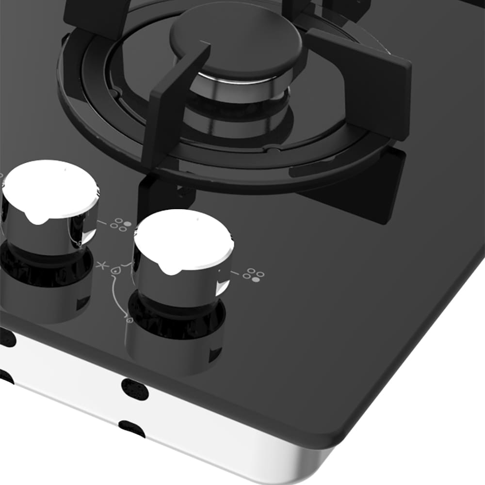 Cubierta en cristal templado y parrillas de hierro fundido con diseño innovador de máxima resistencia.