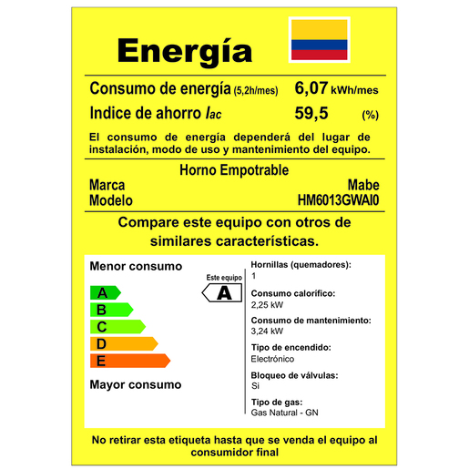Horno de Empotrar a Gas 60 cm Inoxidable Mabe - HM6013GWAI0