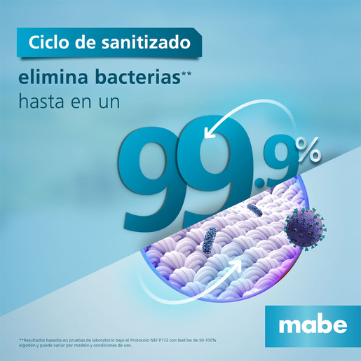 Utiliza altas temperaturas para eliminar 99.9%*de bacterias en la ropa y dejarla impecable.
