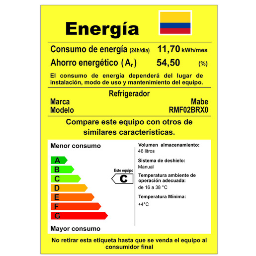 Minibar 46 Lts. Brutos Inoxidable MABE -RMF02BRX0