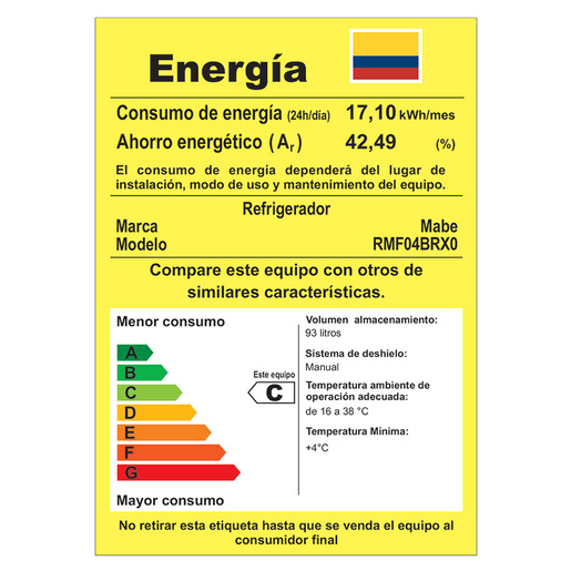 Minibar 93 Lts. Brutos Inoxidable Mabe - RMF04BRX0
