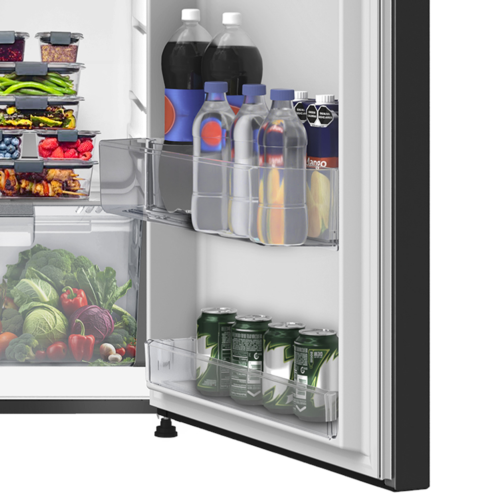 No importa el tamaño de la botella porque aqui siempre cabrá y habra espacio para más. Anaqueles de gran capacidad y resistencia que soportan el peso de todos los alimentos.