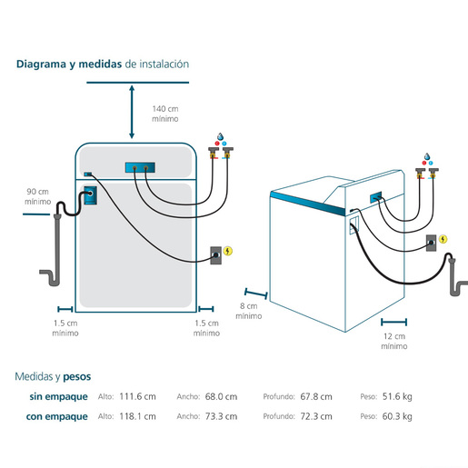 Nuevo dispensador que agrega el detergente, blanqueador y suavizante en el momento justo. Evitando manchas en la ropa para que disfrutes de prendas como nuevas en todo momento.