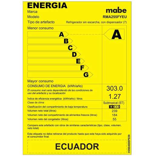 Refrigerador Automático 250 L Inoxidable Mabe - RMA255FYEU