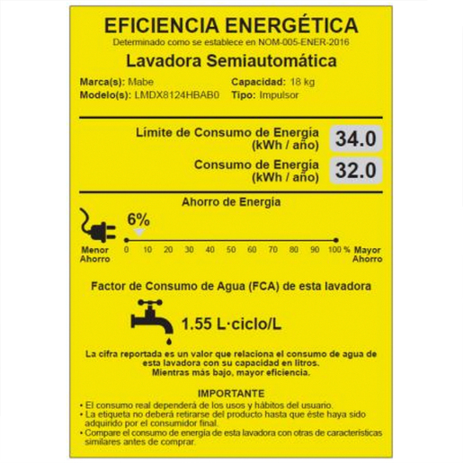 Lavadora Dos Tinas Semiautomática 18 Kg Blanca Mabe - LMDX8124HBAB0