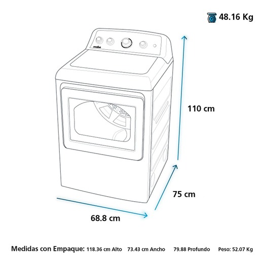 Cuenta con 3 programas de secado automaticos con sensor de Temperatura que protege las prendas de sobrecalentamientos cuidando las fibras. Adicional tiene el programa de secado por tiempo de 10 a 80 minutos.
