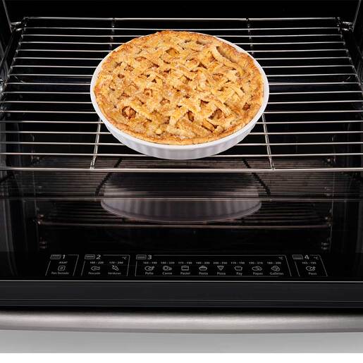 Diseño de la cavidad de horno, compuesta por piso de horno circular, que distribuye mejor el calor en toda la cavidad, recubrimiento pirolítico en toda la cavidad y tamaño optimizado donde se pueden utilizar el 99% de los recipientes para horno.