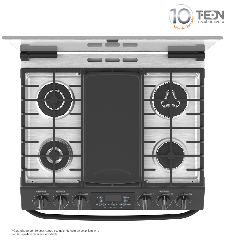 - Tecnología Ultimate, Estufas hasta 67% más potentes*, Nuevo diseño de quemadores con una perfecta distribución de calor. La cubierta como nueva, libre de manchas por amarillamiento y con una limpieza más fácil gracias a la Tecnología TEON. Perfect Cook, diseño circular en piso del horno que distribuye mejor el calor en toda la cavidad.