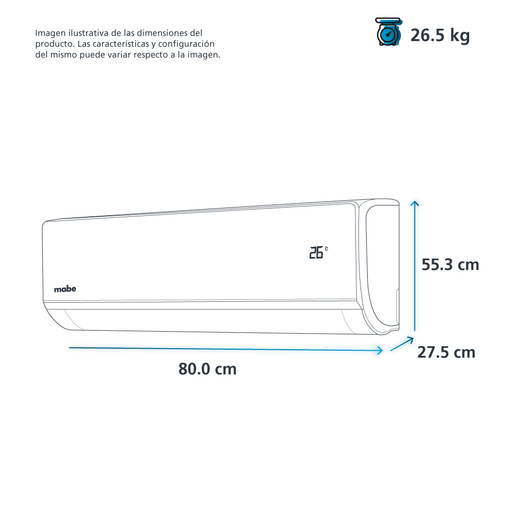 Aire Acondicionado Mini Split Inverter Solo Frío 110 V 1 Tonelada (12,000 BTU) Espejo Mabe - MMI12CAMCAM9