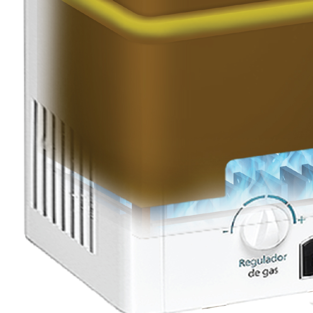 Quemador de alta eficiencia y serpentín de cobre que calientan el agua al momento.