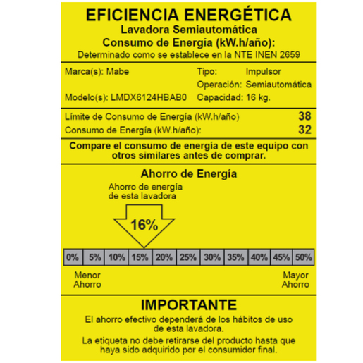 Lavadora Semi-Automática 16 kg Blanca Mabe - LMDX6124HBAB0