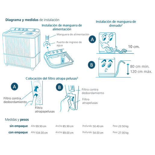 - Tecnología Safe & Clean, recubrimiento antibacterial en la propela y el fondo plástico de la centrifuga, que evita la reproducción de bacterias hasta un 99.99%**Sustancias químicas (orgánicas e inorgánicas) que crean ambientes inhóspitos para los microorganismos, como las bacterias. Air Vent + Ventilas en la tapa que ayudan a que circule el aire para evitar el moho y la reproducción de bacterias. Nuevo filtro fácil de desmontar y limpiar, conserva tu lavadora sin rastro de pelusa.
