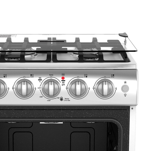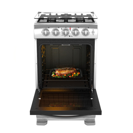 Práctico encendido electrónico por botón, solo basta oprimir y girar la perilla para encender el quemador o el horno. Además cuenta con Luz en el horno para disfrutar del proceso de cocción sin necesidad de abrir la puerta.