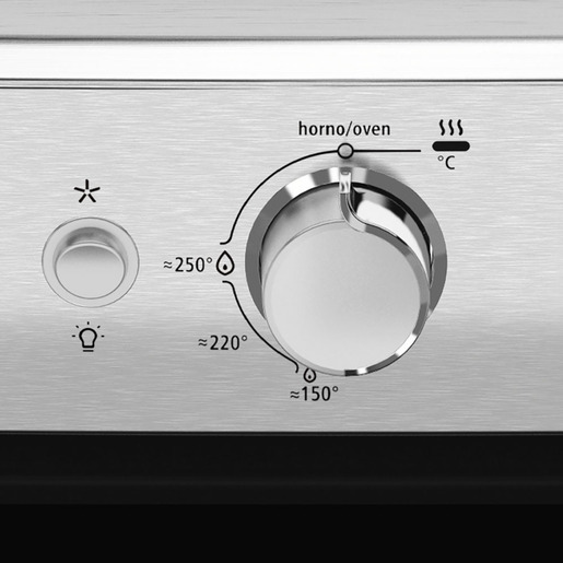 Práctico encendido electrónico por botón, solo basta oprimir y girar la perilla para encender los quemadores. Además cuenta con Luz en el horno para disfrutar del proceso de cocción sin necesidad de abrir la puerta.