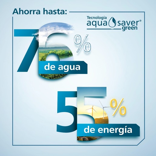 Lava y seca hasta 3 veces más rápido* ahorrando hasta el 76% de agua y 55% de energía. Al calcular tiempo, temperatura y agua de forma automática. Gracias a sus patrones inteligentes de lavado. *comparado con Lavasecadoras.