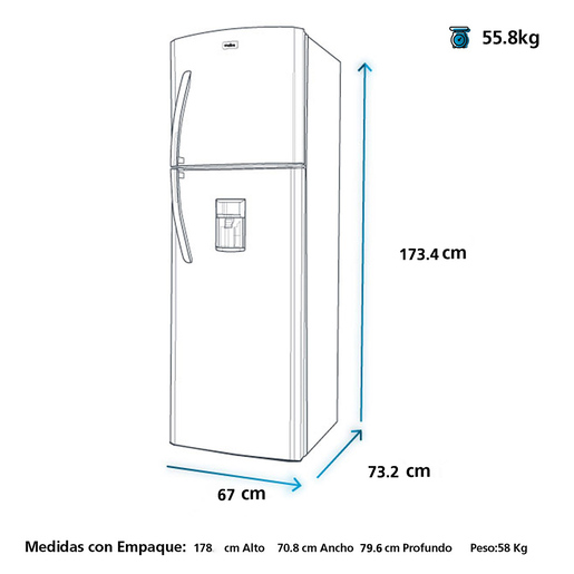 - Con esta refrigeradora mabe convencional podrás facilitar tu vida gracias a su buena distribución y diseño. Olvídate de los alimentos dañados y conserva todos tus productos gracias a su sistema de mayor potencia de enfriamiento. Disfruta de agua fresca en todo momento con su dispensador removible de 2 litros.