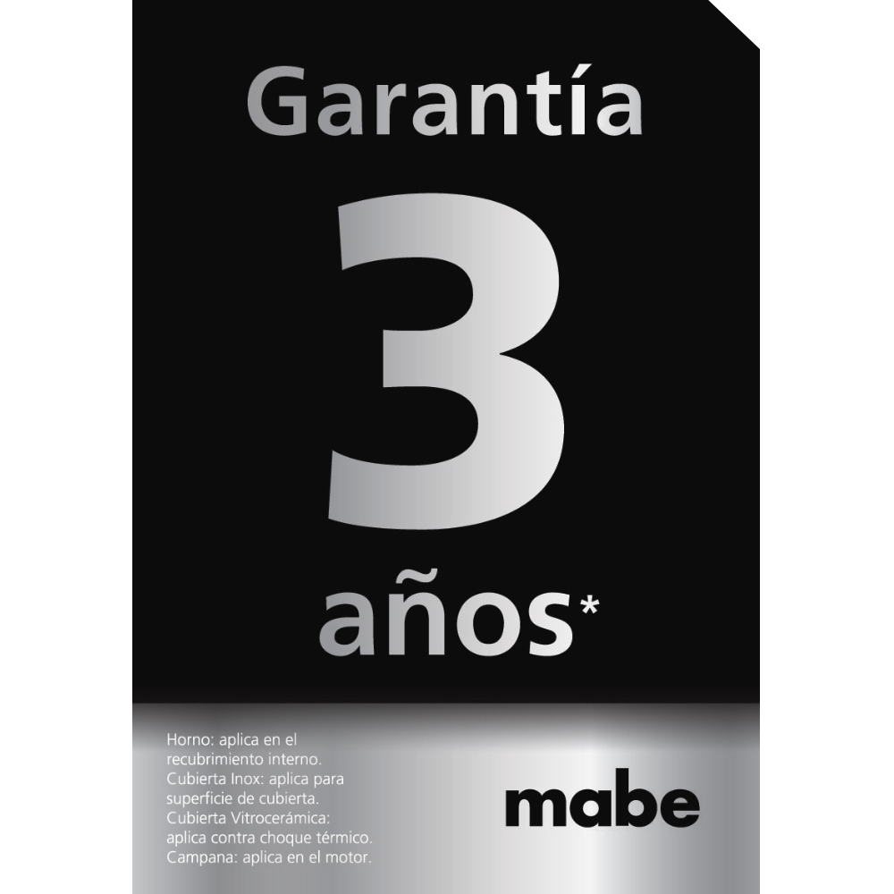 Respaldo y seguridad mabe 3 años de garantía *superficie de cubierta.