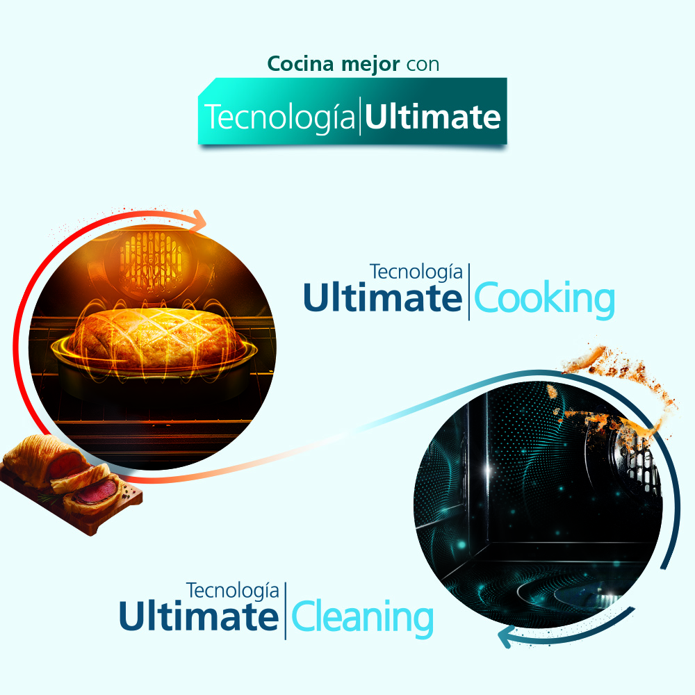 - Tecnologia Ultimate, desde que inicias a prepar hasta que terminas de Limpiar. Quemadores Multi-tamaños. Encendido electrónico. Cubierta en Acero Inoxidable. Perillas con Aros con diseño de fácil limpieza. Gratinador eléctrico de mayor cobertura. Facil Limpieza del Horno easy clean pro.