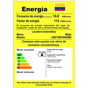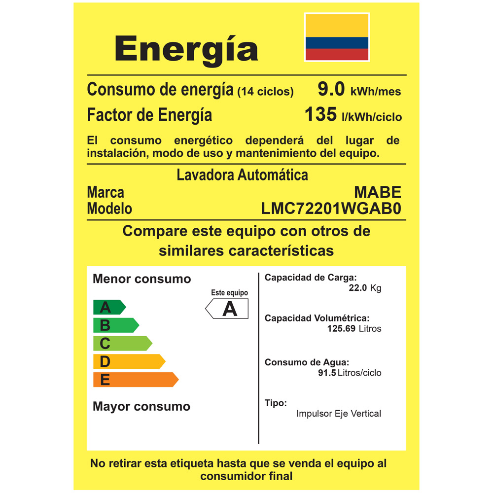 ¡Menor consumo para que ahorres en tu factura y disfrutes en lo que más te gusta! Producto clasificación tipo A según Certificación RETIQ. Con una Lavadora mabe en el año, ahorras lo que te tomarias de agua en 40 años.