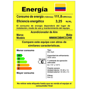 Aire Acondicionado Inverter 220 V 9000 BTUs Blanco MABE - MMI09CDBWCCCHI8