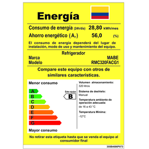 Ahorra hasta un 56% de energía acreditada en la etiqueta RETIQ. Eficiencia tipo B, producto de menor consumo esto se verá reflejado en el recibo mensual de energía.