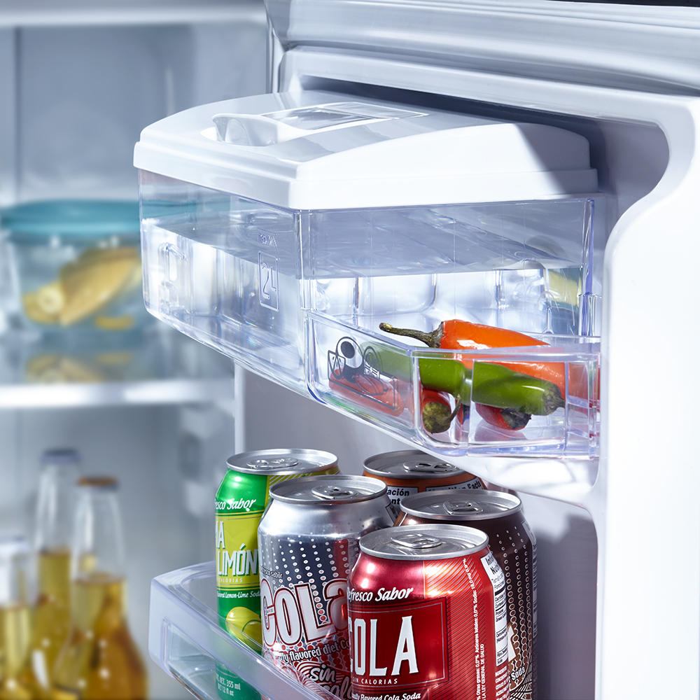 Facilita la conservación y visualización del estado de los alimentos, cuenta con topes de seguridad que evitan que se retire por completo el cajón.