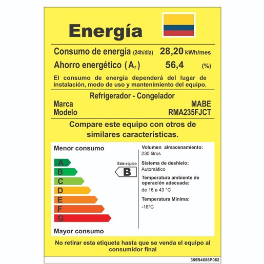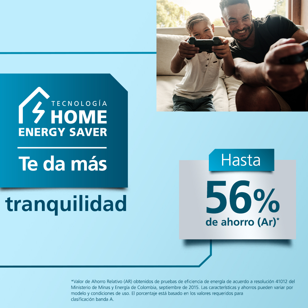 Ahorra hasta un 56% de energía acreditada en la etiqueta RETIQ. Eficiencia tipo B, producto de menor consumo esto se verá reflejado en el recibo mensual de energía.